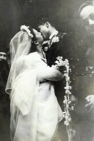 Newlywed's kiss - George and Ida (DiTaranto) Gingerelli