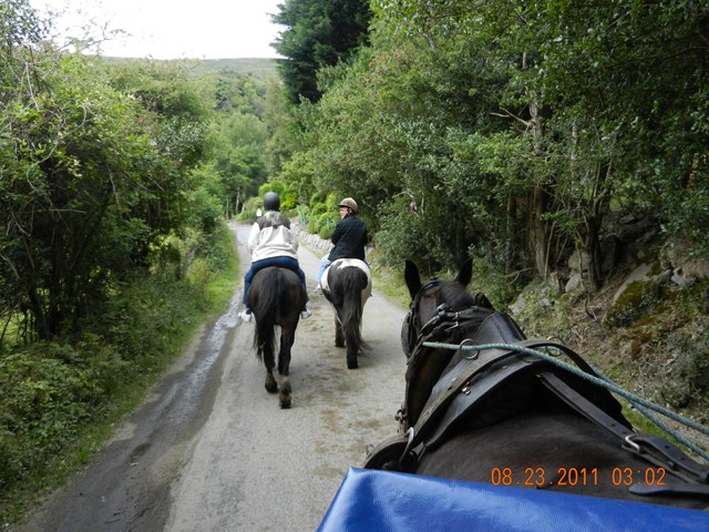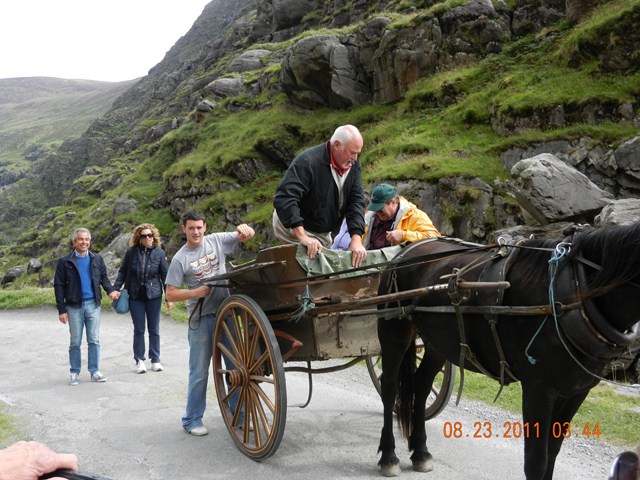 The Gap of Dunloe is a narrow mountain pass between two mountains - Macgillycuddy's Reeks to the west and Purple Mountain to the east. The long and winding road, which includes a 500 ft. climb, is more suitable for riding ponies and horse-drawn carts than it is for motorized vehicles, so our little group made use of both. Guided by local Gap Poneymen, we began our 7 mile trek at Kate Kearney's and ended at Lord Brandon's Cottage.